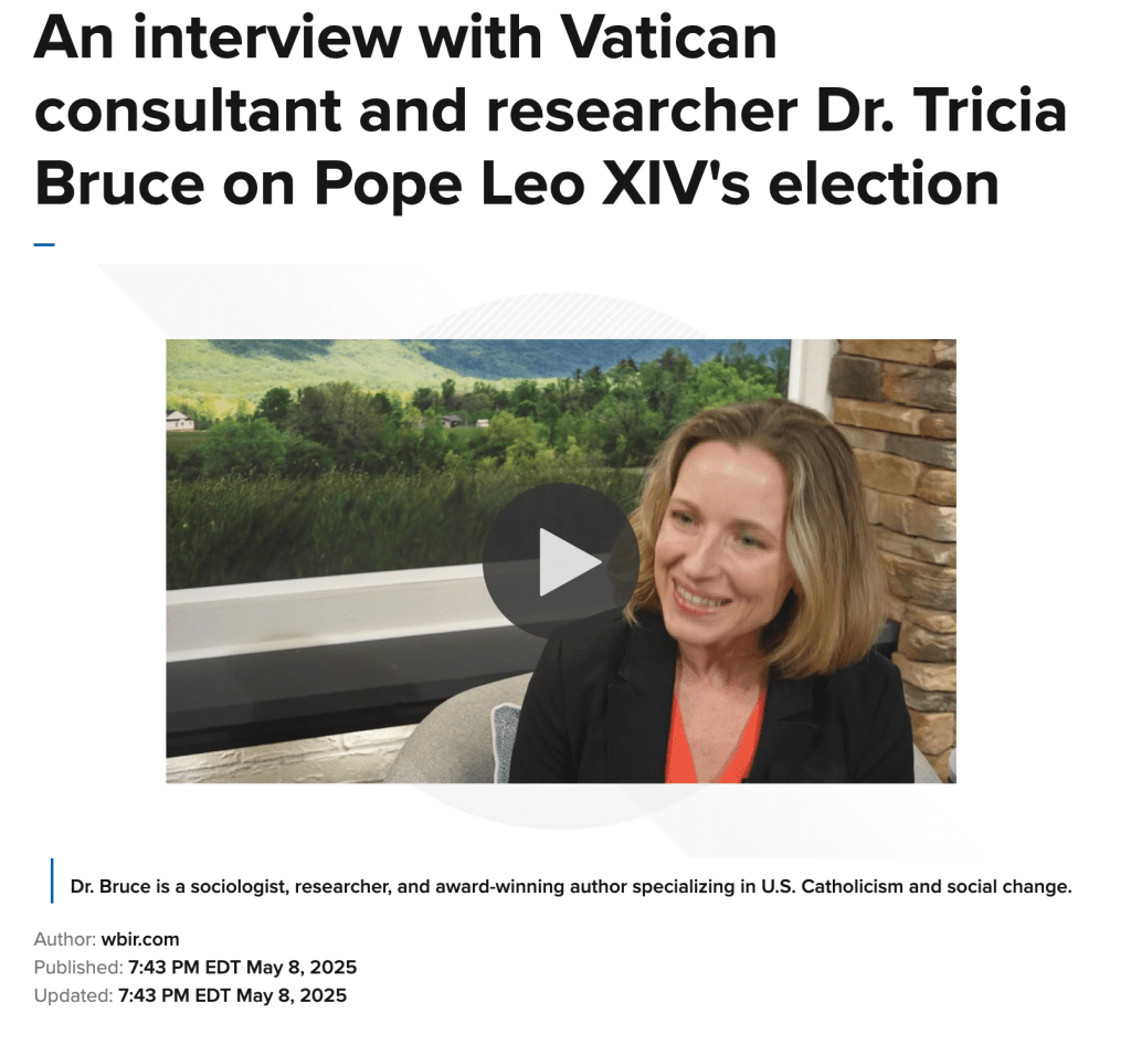 Needless to say, the world is watching and I am smiling and deeply curious as a sociologist to see what sustains and what changes from here. Thanks to WBIR for the invitation to come in to the studio on the day of Pope Leo XIV’s election, still so new.